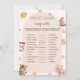 Este adorável cartão de jogo de doce doce doce doce de chá de fraldas apresenta um tema fazenda charmoso com ilustrações bonitinhas de uma vaca, coelho, pintinho, cavalo e porco, cercado por flores alegres e um sol sorridente. As cores pastel suaves e a design branca criam uma atmosfera quente e convidativa. Visite o nosso compro para ver toda a nossa coleção de animais de Fazenda castanha-branca.