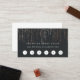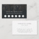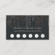 Cartões de fidelidade para maquiadores, esteticistas, cabeleireiros, salões ou spas apresentam cartazes brancos clássicos em um plano de fundo preto suave e rico, com fios verticais de luzes de cordas de folhas rosa em cascata do topo. Adicione o seu nome de empresa e a oferta de fidelidade do cliente abaixo com seis círculos de punchout e personalize a parte de trás com seus detalhes de contato.