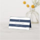 Cartões de lugar dobrados ou cartões de escolta combinam com a nossa coleção de casamento "Mix Náutica" e apresentam minúsculas ilustrações de âncora azul marinho e um fundo listrado branco e marinho. Personalize as costas com seus nomes ou iniciais e data do casamento.