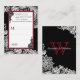 Lace branco sobre fundo preto com sotaques vermelhos coloca design para um casamento gótico.