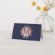Rosa de ouro elegante, moderno e chic, e padrão de desenho floral azul de marinho azul de tendências, cartões de lugar. Este design clássico e sofisticado é perfeito para qualquer evento de na moda e tendências, incluindo casamentos e ocasiões cotidianas. Personalize com sua própria mensagem na frente, assim como um monograma personalizado inicial no verso. Todas as impressão de fotos.