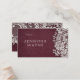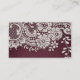 Design de renda floral em cranberry burgundy fundo vermelho, elegante e elegante, excelente para casamento vintage, casamento rústico e casamento country no outono e no inverno. Observe que esses cartões de lugar são vendidos em pacotes, de modo que o nome de convidado no cartão é apenas para fins de exibição, remova-o antes de comprar. Veja todas as peças correspondentes na coleção abaixo.