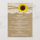 Cartões de menu da coleção Kraft, Lace & Sunflower