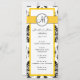 Cartões de Menu de Casamento com padrão de damasco preto e branco e cor de destaque amarela com monograma. Em um lado, o cartão tem detalhes sobre os eventos da recepção de seu casamento. No outro está o menu de casamento. Personalize com seu monograma, nomes, data de casamento, menu de recepção e eventos. Por Elke Clarke ©2011 Personalize com suas informações e cores