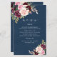Cartões de Menu de Casamento Azul Marinho Borgonha