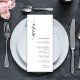 Crie uma impressionante impressão na sua recepção de casamento com os elegantes cartões clássicos de casamento preto e branco, projetados para uma variedade de eventos sofisticados. Estes cartões de cardápio são perfeitos para casamentos em tempo negro, recepções formais de salão, cerimônias modernas minimalistas e casamentos tradicionais da igreja. O seu refinado design a preto e branco complementa uma ampla gama de estilos decorativos, desde temas monocromáticos até configurações de vintagem ou contemporâneos. Quer você esteja hospedando um encontro íntimo ou uma celebração esbanjada, esses cartões de menu fornecem uma maneira polida de apresentar seu menu enquanto adiciona um toque de classe ao seu dia especial.