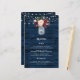 Design apresenta um fundo de grãos de madeira azul-marinho rústico com as luzes de cordas roxas no topo. Design também apresenta um belo pote de mason repleto de burgundy, vermelha, ameixa e rosas de pincel com verde botânico eucalipto. Mude as iniciais da demonstração para as suas.