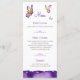 Procurando lindos cartões de carrete de cardápio de borboletas roxas e amarelas que você pode personalizar? Esta placa de rack de menu foi projetada com ilustrações de aquarela e mostra várias borboletas bonito na frente e no verso em tons de roxo / violeta e ouro. Eles podem ser personalizados para refletir as entradas do seu dia especial, e os convidados podem levá-los para casa como recordação do seu casamento. Cores: roxo, violeta, ametista, lavanda, amarelo e ouro. Categoria: carteiros de cardápio de casamento personalizados, tema de casamento de borboletas.
