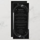 As estrelas do Sol da Lua Negra Mística Estrelas Sol da Lua Negra Cartões de Menu de Casamento apresentam um sol prateado, lua e estrelas sobre um fundo preto com os detalhes do menu no centro em um moderno roteiro de caligrafia prateada. Personalize editando o texto nas caixas de texto fornecidas. Projetado para você pelo Evco Studio © em www.zazzle.com/store/evcostudio