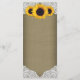 Cartões de Menu de Casamento de Girassol em Juta e Renda - apresentam um fundo de juta rústica e renda com girassóis impressos.
