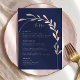 Este menu de casamento tem uma fonte moderna escrita à mão e uma design minimalista limpa. Os cartões de menu apresentam um estilo de script e um layout que é fácil de personalizar.