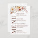 Melhore o encanto da celebração romântica do casamento outono botânico com este cardápio sofisticado e polido. Apresentando uma intrincada coroa marrom, terracota e uma coroa florescente de burgundy com simples escrita de caligrafia minimalista.