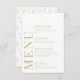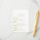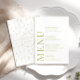 Melhore o encanto da sua celebração romântica de casamento clássico com este cartão de menu sofisticado e polido. Com um intrincado padrão adornado com delicadas flores verdes, essa bela design é elevada com personalização, mostrando os nomes da noiva e do noivo nas costas.