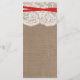 A coleção de casamento ruidosa de arco vermelho é uma design impressionante que apresenta um adorável fundo de efeito de burvolta rústica com um romântico efeito de renda branca vintage e um espantoso arco vermelho. Esses menus podem ser personalizados para sua ocasião especial e fariam a modelo perfeita para menus de casamento, menus de chá de panela, menus de festa de noivado, menus de festa de aniversário e muito, muito mais. *Observe que o Zazzle só vende produtos impressos para que este item não tenha nenhum material real de burlap, rendas ou fita/ arco.