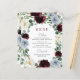 Cartões de menu do Casamento outono Dusty Blue Burgundy - apresentam um eucalipto e uma coroa verde decorada com marfim/branco, azul empoeirado/ardósia/aço e flores de burgundy/cranberry. Exibir a coleção correspondente nesta página para localizar produtos coordenadores.