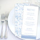 Elegante padrão botânico brilhante de chinoiserie azul, a porcelana chinesa inspirou primavera floral ou cartões de cardápio de verão.