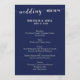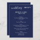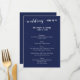 Cartões de menu de casamento azuis simples com texto personalizável