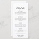 Este menu apresenta uma fonte moderna de script manuscrito e design simples minimalista. A combinação simples de cores preto e branco faz dela a adição perfeita a qualquer evento. Use este menu para sua recepção de casamento, chá de panela, festa de aposentadoria, etc. Edite o texto *maioria* para atender às suas necessidades. Par com qualquer coisa da coleção WILLOW para uma aparência coesa: https://bit.ly/3e8um3k