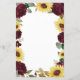 A design apresenta belos girassóis de aquarela e rosas vermelhas de burgundy com elegante eucalipto e outros elementos verdes.