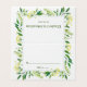 Simples e elegante, estas cartas de mesa de casamento são a forma perfeita de sentar todos os seus amigos e família no seu grande primavera ou grande dia de verão. Apresenta um verde em volta de um quadro que envolve o texto verde e um padrão de dll, hortelã, tomilho, salsa, galho de oliveira e outras folhas. O interior é coberto por um padrão de ervas medicinais. Todo texto verde é personalizável para ajustado das suas necessidades de celebração do dia de casamento.