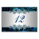 Cartões de mesa pavão com belos antecedentes de penas de pavão azul e elegante prata e área azul para o texto ou números de sua escolha.