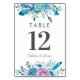 Cartões de mesa florais florais de cor púrpura e azul para combinar com seus convites de casamento. Simples e elegante em qualquer recepção. Personalize o número e os nomes abaixo. © Mini Moi Impressões