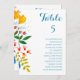 Guie seus hóspedes em estilo com nossos elegantes e brilhantes cartões de assentos de mesa floral de flor da água doce. Apresentando imagens florais amarelas, verdes, azuis e vermelhas impressionantes, estas cartas trazem um toque vibrante e artístico à sua decoração de casamento. Projetado com um modelo personalizável, cada placa permite que você liste os convidados sentados em cada mesa, garantindo um posicionamento regular e organizado. Perfeito para casais que valorizam a beleza e a funcionalidade, esses cartões de lugares acrescentam um detalhe elegante e alegre ao seu dia especial.