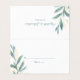 Simples e elegante, estas cartas de mesa de casamento são a forma perfeita de sentar todos os seus amigos e família no seu grande primavera ou grande dia de verão. Apresenta folhas florais verdes, douradas e em aquarela, sobre fundo branco e tipografia verde que pode ser personalizada. O interior é coberto pelo mesmo design floral, mas com cores opostas.