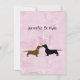 Cartões de informação para mesa de recepção de casamento com tema de cachorro fofo, feitos com gráficos de um fundo rosa desgastado. Silhuetas fofas de um dachshund marrom e um preto, com corações rosa entre eles, decoram a parte inferior do cartão. Todo o texto é personalizável para atender às necessidades do seu evento. Produtos combinando disponíveis.