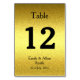Cartão de mesa de casamento personalizado com texto modelo para um número, nomes e data; design ouro e retrorreflector amarelo com textura em círculos de boque;