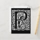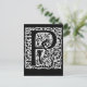 A letra P em uma placa em negrito preto e branco com um design giratório do ornamentado. Ele tem a aparência de uma arte antiga em bloco de madeira. Se você está procurando uma design única e única para todas as suas necessidades de correspondência, você não pode errar com esta. Disponível em cartões de saudação, cartões de aviso ou postais. Envelopes incluídos com saudações e avisos (sem envelopes com cartões postais). Dentro do vazio. Comprar em massa para salvar.
