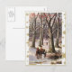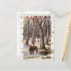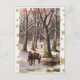 Cartão do natal vintage, puxado a cavalo com vista interna do homem atrás em um outro homem.