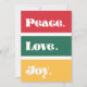 Paz, Amor e Joy! Uma caligrafia moderna e elegante para esta coleção de Cartões de natal de inverno. Você também pode mudar facilmente a cor da fonte ou do plano de fundo para o seu gosto.