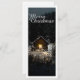 Cartões de natal com uma pequena bruxa numa paisagem de inverno branca e mágica
