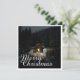 A carta mostra uma cena atmosférica, enrolada, com uma pequena cabana de madeira iluminada no meio de uma floresta coberta de neve. O dentro da fonte de luz quente cria um belo contraste ao meio escuro e pacífico. A elegante inscrição "Feliz Natal" em branco dá ao motivo um toque festivo. 🎄 ✨