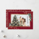 Cartões de Natal com foto de cor vermelha, personalizados e elegantes, com um quadro vermelho escuro, decorado com ilustrações de cor d'água de poinsettia, uma lanterna e um galho de pinheiros com cones de pinho e ornamentos. Personalize facilmente esses Cartões de foto de Natal elegantes de aquarela com sua imagem e texto.