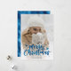 Cartões de Natal com fotos azuis personalizadas, com uma foto com uma camada de neve e uma letra manuscrita de script na frente e uma folha azul esfarrapada com neve na parte de trás. Personalize facilmente estes cartões azuis de Natal com a sua imagem e texto.