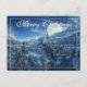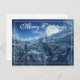 Este belo e colorido cartão de Natal retrata uma cena de igreja nevada e "Feliz Natal".