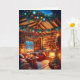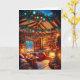 Desejando-lhe um Natal quente e aconchegante e antiquado e um Feliz ano novo. O texto dentro do cartão pode ser personalizado, para que você possa adicionar seu nome se quiser ou mudar a saudação. Cabana quente e acolchoada na véspera de Natal, cheio de decorações de férias, mortes de férias e luzes de Natal.