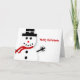 Cartões de Natal bonitos para amigos e familiares com um bonitinho bonitinho bonitinho a vestir um cachecol vermelho e o ditado Feliz Natal escrito em uma fonte vermelha. Adicione o seu próprio texto à frente e dentro do cartão para fazer com que o seu cartão dê especial destaque durante os feriados.