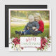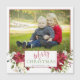 Belo vermelho-burgundy, creme e aquarela floral verde com letras de tipografia à mão palavras "Feliz Natal" Cartão de Férias Fotográficas. Adicione sua foto, seu nome e data neste feriado rústico, mas elegante, mantendo sua família e amigos amedrontados o ano todo.