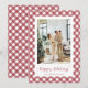 Cartões de natal personalizados de xadrez vermelha e branca com um padrão de verificação vermelho e branco. Personalize facilmente estes cartões de natal de fotos de cheques de gingham com sua foto e seu nome de família.