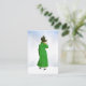 Esta senhora encantadora de um vestido brilhante Regência verde na neve faz um cartão de férias elegante. O verso diz, "Feliz Feriados".