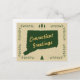 Um tema da natureza rústica inspirou design. O estado de Connecticut em uma cor verde da floresta. O texto diz Saudações de Connecticut, mas você pode personalizá-lo com seu próprio texto. A borda é um galho foliar com alguns sotaques de pinheiros em cima e em baixo. O fundo é uma cor kraft castanha clara com textura de marca d'água floco de neve. Personalize estes cartões para a época de Natal. São também excelentes para uso geral.