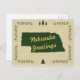 Um tema da natureza rústica inspirou design. O estado de Nebraska desenhou numa cor verde da floresta. O texto diz Saudações de Nebraska, mas você pode personalizá-lo com seu próprio texto. A borda é um galho foliar com alguns sotaques de pinheiros em cima e em baixo. O fundo é uma cor kraft castanha clara com textura de marca d'água floco de neve. Personalize estes cartões para a época de Natal. São também excelentes para uso geral.