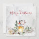 Cartões de Natal de Lanterna Floral Floral de Neve Winter. O texto feliz de Natal na frente e saudar no verso é totalmente personalizável.