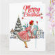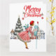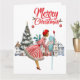 O Natal, como parecia na década de 1950, com esta trabalho de arte retrô de uma senhora toda vestida com um vestido de cheio esfolado aparado com Cartões de natal brancas de poste de pelo. Feliz Natal e dentro Feliz ano novo