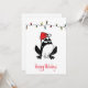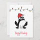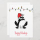 Cartões de natal brancos apresentam ilustração de sapo preto e branco com chapéu vermelho de Papai Noel, uma sequência de luzes de feriado e texto personalizável de "Feriados Felizes"