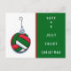 Cartões postais de Natal de voleibol com arte vermelha e verde de ornamentação de voleibol e a mensagem: Tenham um feliz Natal de volley. Adicione seu texto para personalizar facilmente.
