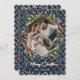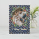 Cartões de Natal Elegantes, azuis e dourados, com um quadro fotográfico geométrico cercado por uma faixa de aquarela sobre fundo de xadrez de búfalo azul e preto. Personalize facilmente estes cartões azuis de Natal com a sua imagem, texto e nome da família.